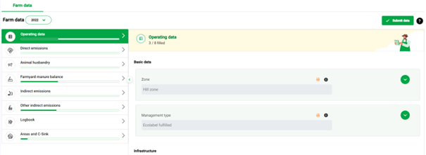 Die eingereichten Betriebsdaten werden von Experten bei einem Vor-Ort-Besuch und auch direkt im Tool geprüft. Als Ergebnis wird der CO2-Fussabdruck berechnet.